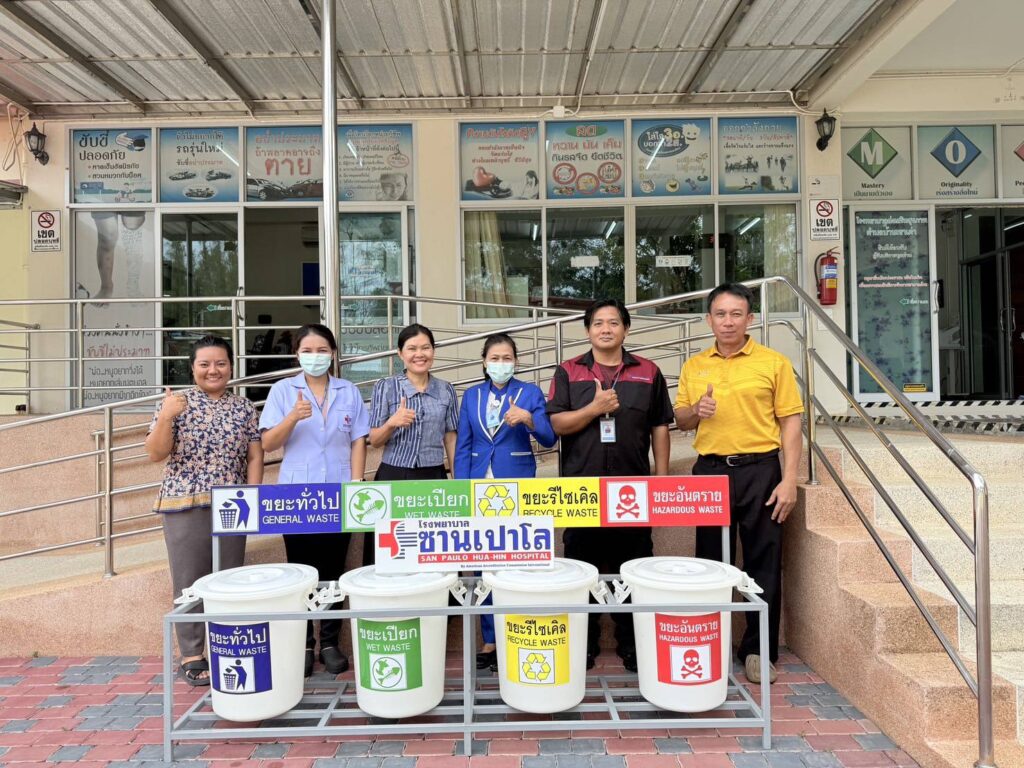 คณะกรรมการพัฒนาคุณภาพและสิ่งแวดล้อมโรงพยาบาลซานเปาโลหัวหินได้นำชุดถังขยะแยกประเภท ไปมอบให้กับโรงพยาบาลส่งเสริมสุขภาพตำบลเขาเต่า โดยนายสามารถ ทองมาก นักวิชาการสาธารณสุขชำนาญการ เป็นผู้รับมอบ กิจกรรมครั้งนี้มีวัตถุประสงค์เพื่อสร้างเครือข่ายในการพัฒนา GREEN เพื่อให้เกิด GREEN Community สอดคล้องกับมาตรฐาน Green & CLEAN Hospital Challenge เมื่อวันที่ 13 พฤษภาคม 2568  ณ โรงพยาบาลส่งเสริมสุขภาพตำบลเขาเต่า