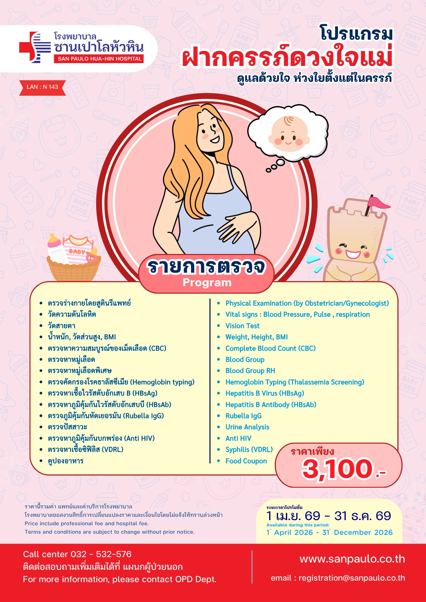 Embark on your motherhood journey with confidence. Our “Antenatal Care Program” at San Paulo Hua-Hin Hospital provides comprehensive care and peace of mind for you and your baby, right from the very beginning.